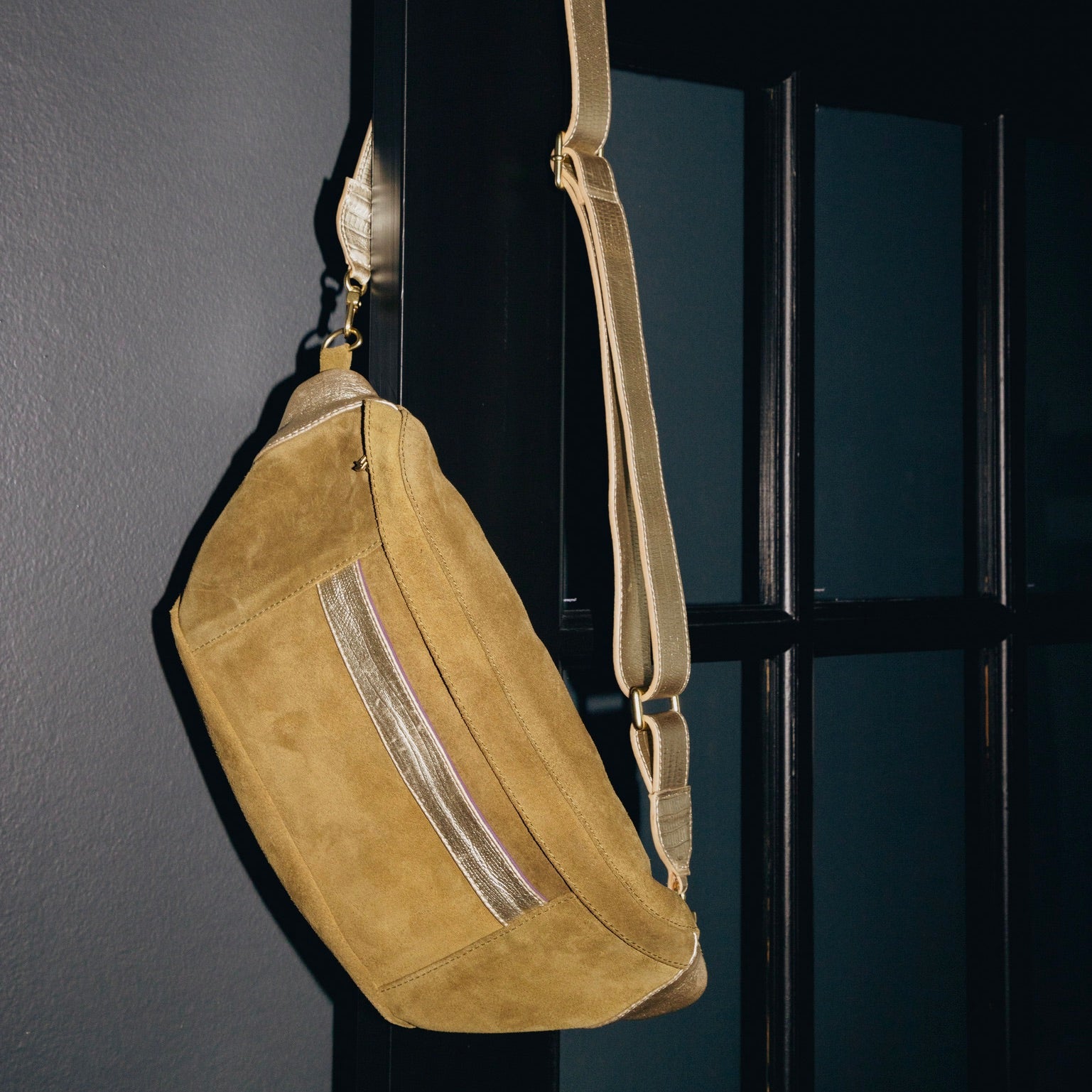 The Kate exudes effortless charm. She’s tailor-made for the busy lady on the move, looking to elevate her casual attire with a timeless sling bag. Whether you want to dress her up or down, the Kate has a relaxed, chic style. Crafted from soft leather and suede, she comes with a front pocket with magnetic closure, perfect for a phone, and a built-in wallet. Pairs perfectly with our Crossbody or Belt Bag Straps.